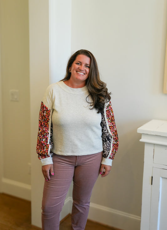 Mix Print Long Sleeve Top