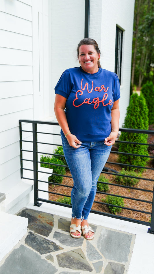 War Eagle Glitter Script Top