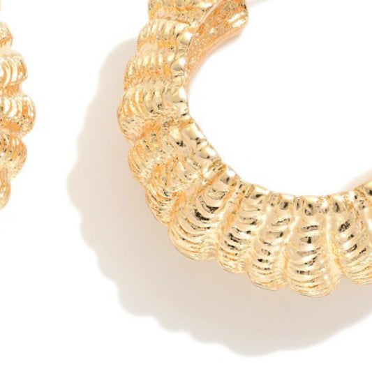 Chunky Ridged Metal Tone Drop Hoop Earrings
