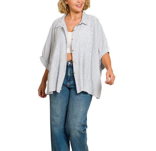 Woven Stripe Button Down
