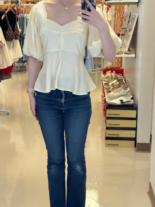 Creamy Collared Puff Sleeve Top