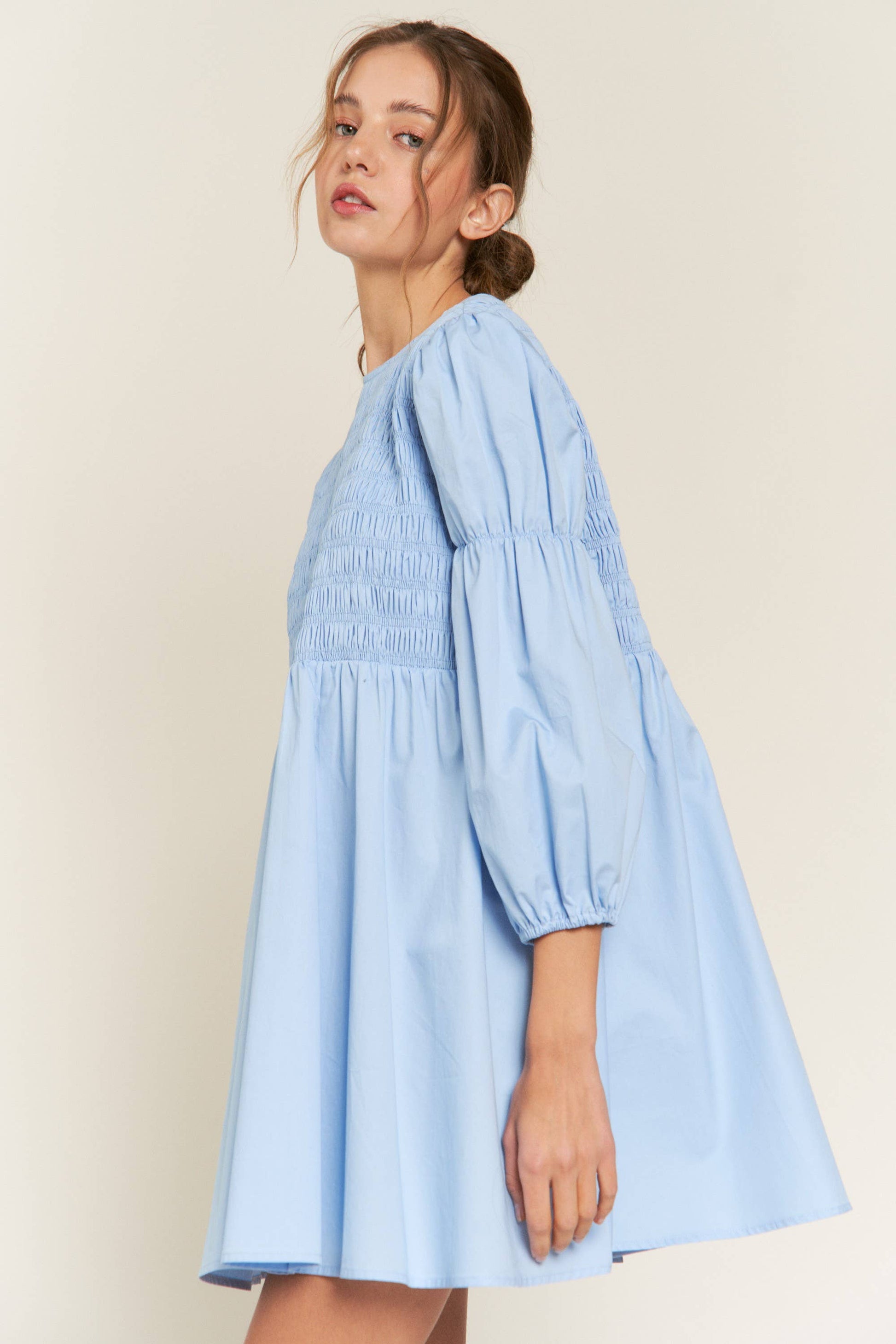 Embrace flirty charm with the Blue Dakota Smocked Mini Dress, featuring a perfectly smocked bodice that hugs your silhouette while offering comfort and stretch. Its playful puff sleeves add a touch of whimsy, enhancing the babydoll design for an effortlessly cute look. Crafted from 100% cotton, this breathable mini dress keeps you cool and comfy all day long. The delightful blue shade brightens your wardrobe, making it ideal for sunny outings or casual gatherings where you want to shine with playful style.